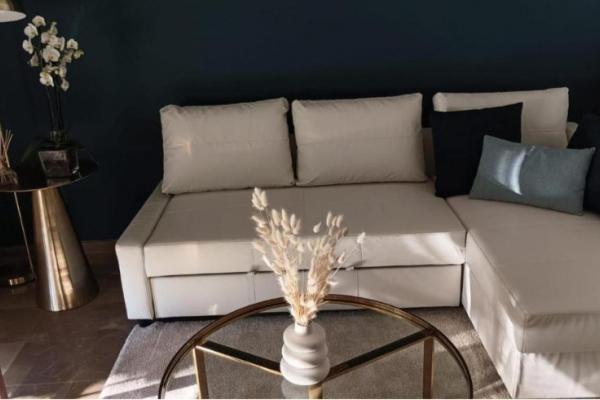 El salón es espacioso, con zona de comedor para 4 o 6 comensales y sofá cama para dos personas, lo que permite aprovechar al máximo el espacio.