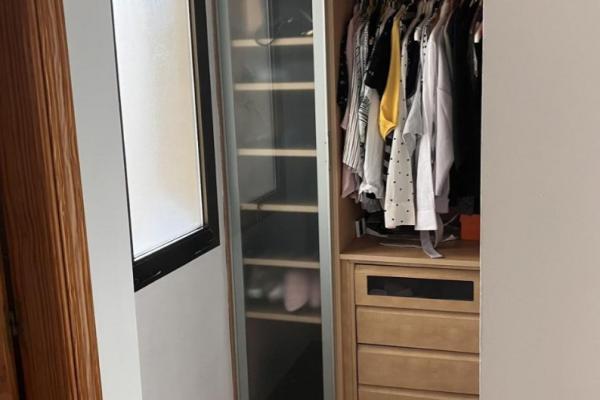 El dormitorio principal incluye baño en suite, vestidor y también salida directa a la terraza a través de un ventanal con puerta.