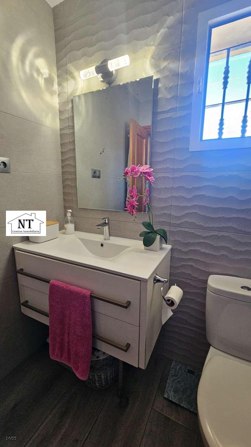 Distribución y espacios: en la primera planta, te sorprenderá su amplio salón con chimenea, ideal para relajarte y crear momentos inolvidables. La cocina amueblada tiene acceso a un estupendo patio trasero, parcialmente cerrado con Lumon, que te permitirá aprovecharlo durante todo el año. Además, en esta planta encontrarás un dormitorio y un baño completo, perfecto para quienes prefieren no subir escaleras. El patio delantero, espacioso y luminoso, puede usarse como zona de ocio o incluso como aparcamiento, aunque siempre hay sitio en la calle. En la segunda planta, dispones de tres dormitorios exteriores con armarios empotrados, además de un baño completo. Un armario empotrado adicional en el pasillo ofrece espacio extra para almacenamiento, eliminando preocupaciones por el espacio.