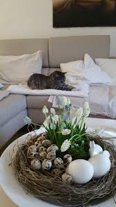 - Ramas de Cerezo y Sauce: El "Árbol de Pascua" de 2026 es minimalista. Unas ramas secas en un jarrón de vidrio soplado, decoradas con colgantes de papel reciclado o lino, son el foco de atención perfecto para un recibidor o una mesa de centro.