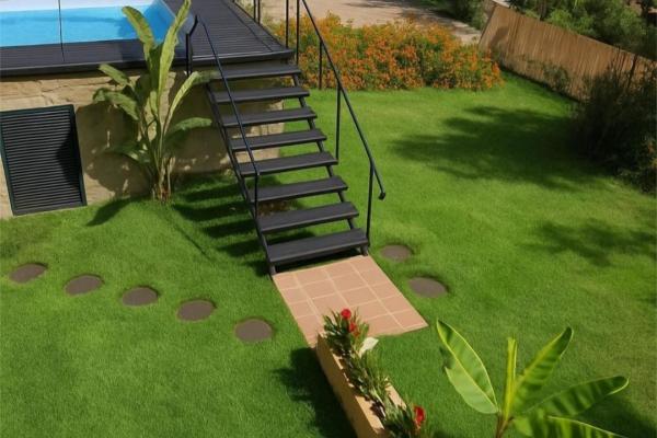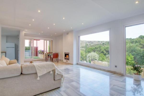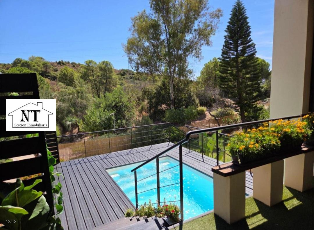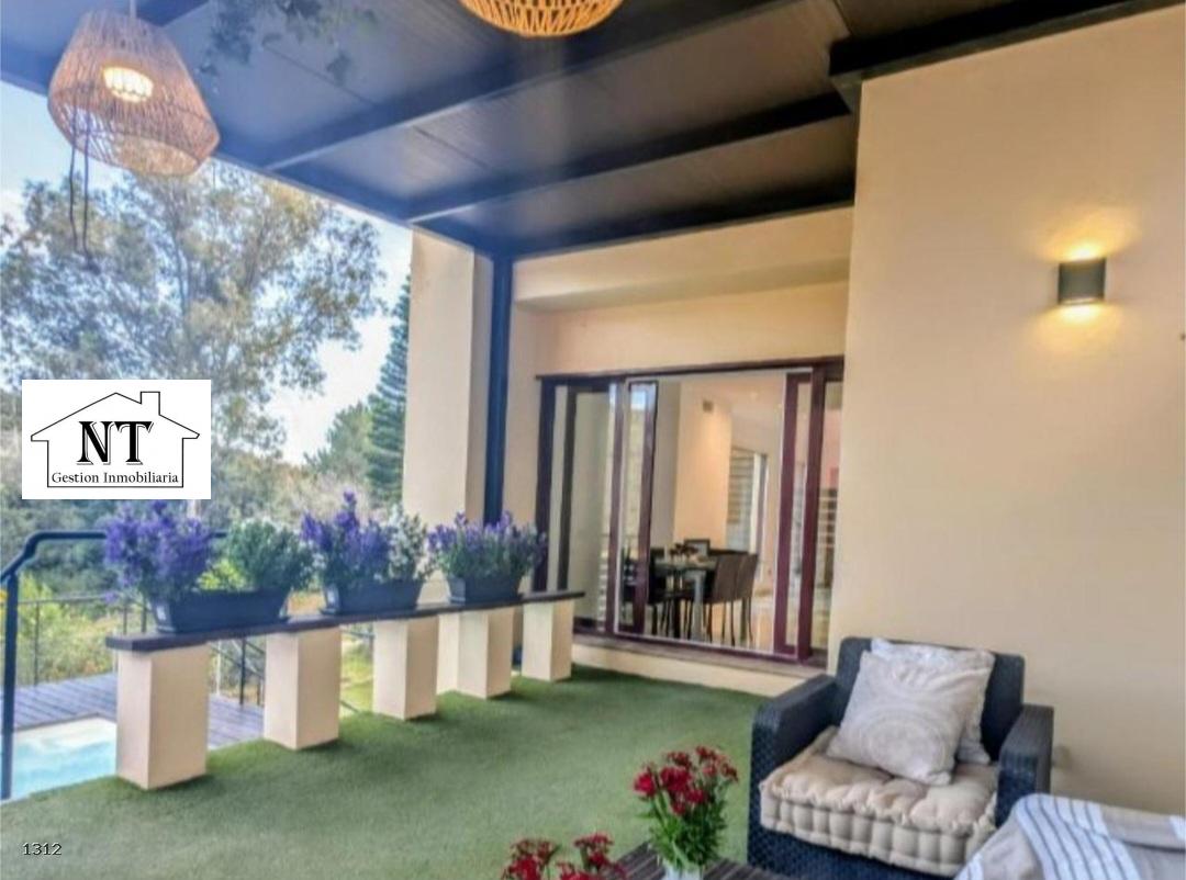 La vivienda destaca por su amplitud y su cómoda distribución. El salón principal se abre a una amplia terraza soleada, desde la que se accede a una piscina privada elevada con chorros de hidromasaje, creando un espacio perfecto para relajarse y disfrutar del entorno natural con total intimidad.
