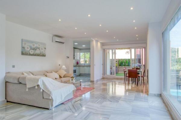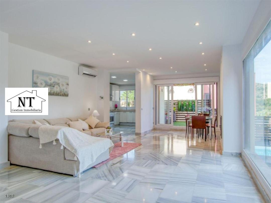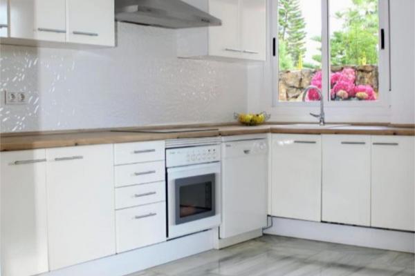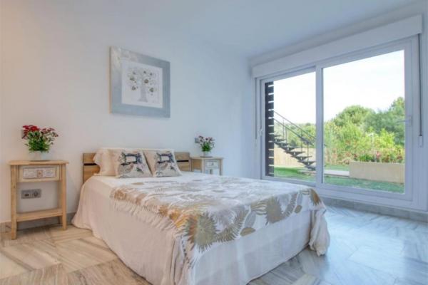 La cocina, moderna y funcional, está diseñada para el día a día. La zona de descanso incluye dos amplias suites principales: una de ellas con balcón privado y vistas relajantes, y la otra con salida directa al jardín, aportando una conexión única con la naturaleza. El tercer dormitorio dispone también de baño en suite y acceso directo al jardín.