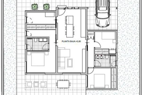 La vivienda, desarrollada en una sola planta, cuenta con una superficie construida de 130 m² y una distribución cómoda y muy funcional:
