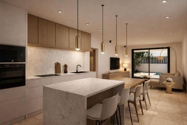 La vivienda se entrega con cocina completamente equipada, muebles de baño y armarios empotrados, además de carpintería de aluminio de altas prestaciones, garantizando un excelente aislamiento térmico y acústico.